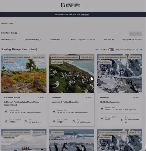 Vi afsætter flere kahytter med lavt solotillæg på hver rejse - deriblandt ekspeditioner til Antarktis, Galápagosøerne, Grønland og Nordvestpassagen.