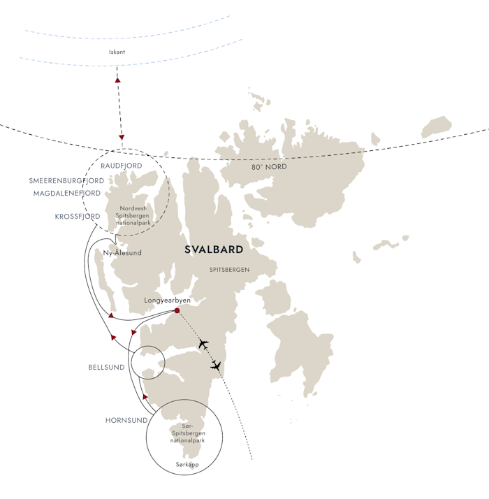 Svalbards forår byder på strålende snevidder, formede isbjerge og det bløde skær fra den lave arktiske sol. Med os går du på opdagelse i en lille båd eller går i land på steder kun få nogensinde når. Alle aktiviteter ledes af HX's topprofessionelle ekspeditionsteam i overensstemmelse med AECO's retningslinjer og den norske regerings forordninger, hvilket sikrer, at denne smukke region forbliver beskyttet for de kommende generationer.
