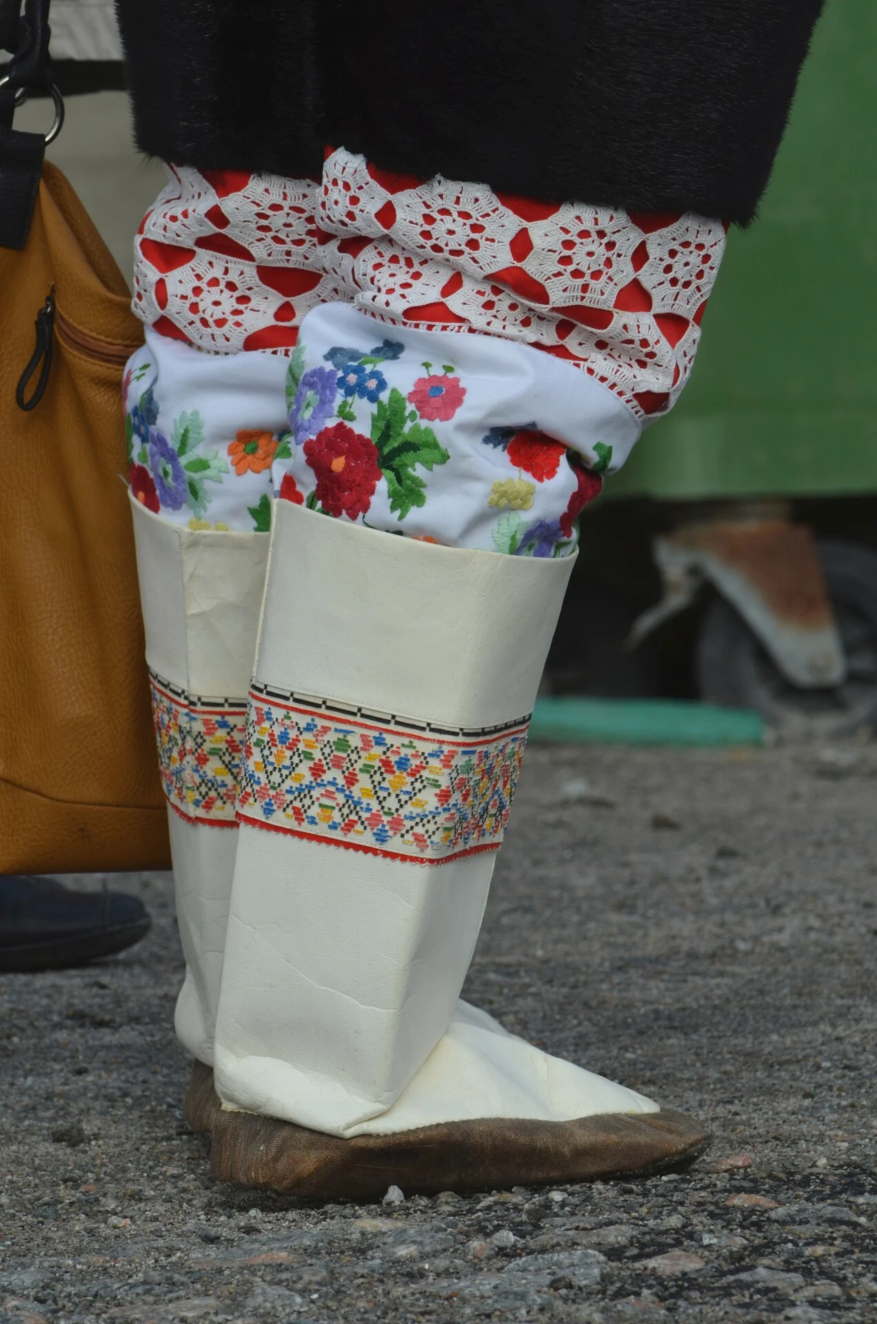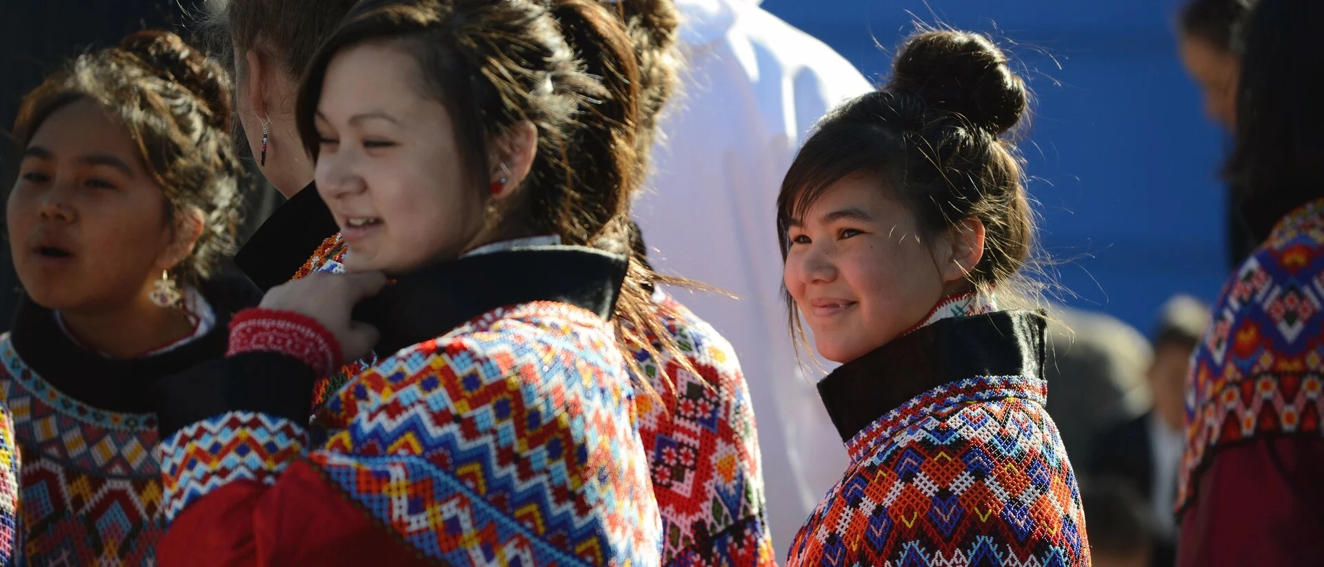 Bunte Farben und Muster kommen eher bei den Nationaltrachten der Frauen vor, die aus einer Bluse mit einem darüber getragenen Anorak und einer Hose bestehen. Die weiblichen Kamiks sind für gewöhnlich oberschenkelhoch und bestehen aus Robbenfell. Sie sind abgenäht mit Seide, die mit Blumenmustern bestickt ist. Diese Trachten sind wirklich sehenswert!