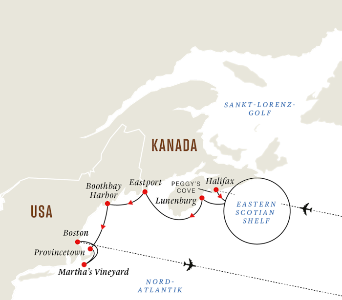 Sie fahren durch die wunderschöne Wildnis von Nova Scotia, machen Halt in einigen der charmantesten Städte Neuenglands und erreichen das lebhafte Boston.