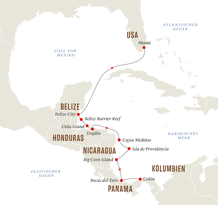 13-day Central America expedition cruise from Miami to Belize, Honduras, Colombia and Panama