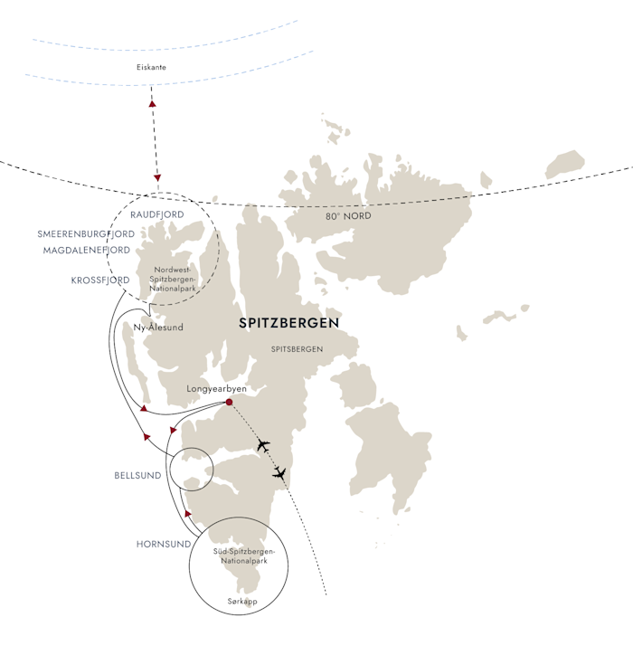 Ihr Abenteuer in der Arktis endet mit der Rückkehr nach Longyearbyen. Ein Transfer wird Sie zum Flughafen bringen, von wo aus Sie Ihren Fug nach Oslo antreten. Sie werden mit viel neuem Wissen über die arktische Tierwelt, die Geschichte der Region, das Polareis und den Klimawandel im Gepäck zurückkehren – und natürlich mit unvergesslichen Erinnerungen an dieses einmalige Erlebnis.