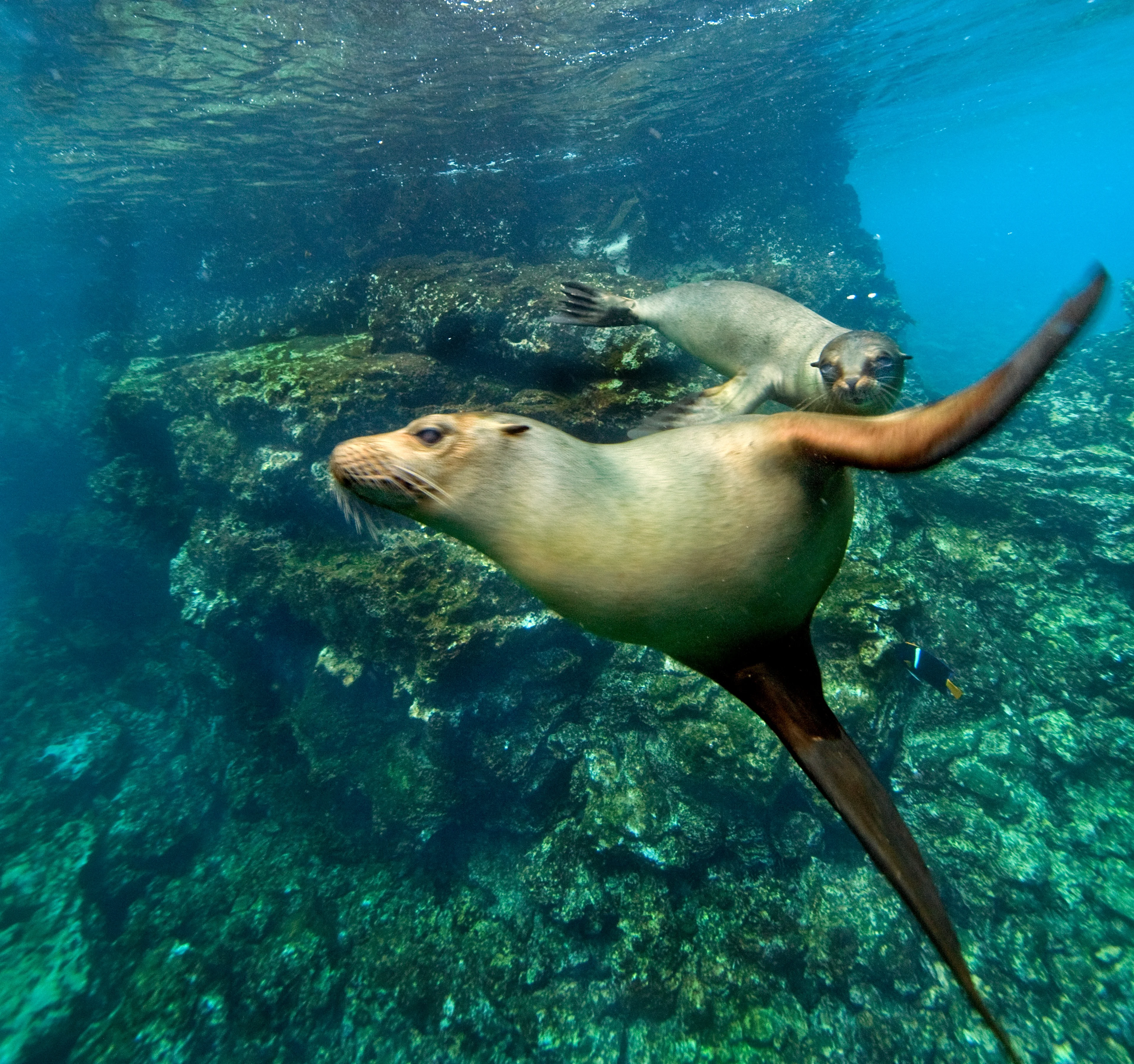 Die Insel ist auch ein großartiger Ort, um Kolonien von Blaufußtölpeln, Fregattvögeln und Gabelschwanzmöwen zu beobachten. In den Gewässern von Seymour Norte sind auch Seelöwen und Meerechsen zu Hause, die hier viel Nahrung vorfinden. Als der junge Charles Darwin zum ersten Mal Meerechsen zu Gesicht bekam, beschrieb er sie als „abscheulich aussehende“ und „dumme“ Kreaturen – wir sind da anderer Meinung und Sie sicher auch!