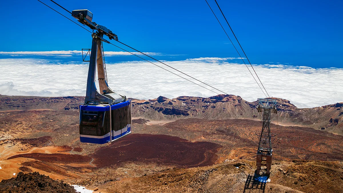 Entspannen Sie sich während der Seilbahnfahrt zur Bergstation des Teide bis auf 3.555 m Höhe.