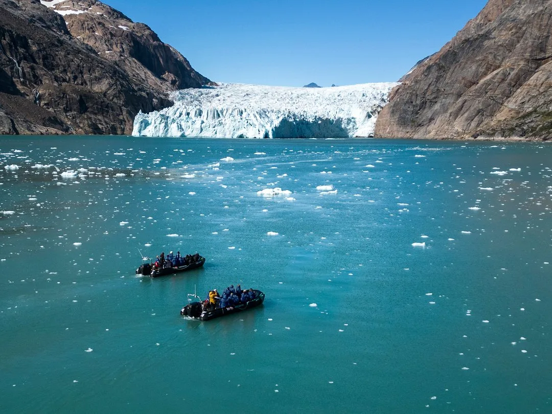Fahrten mit dem Expeditionsboot und Kajaktouren in eisgefüllten Buchten