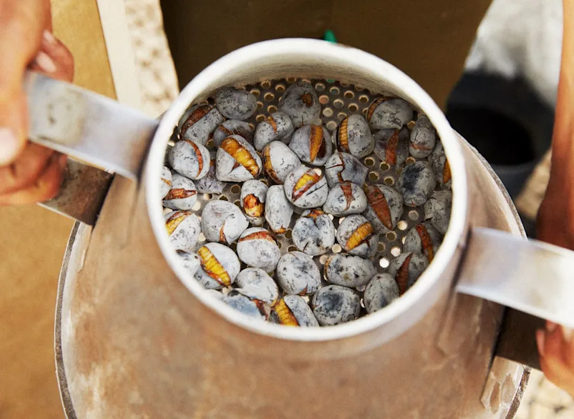 Man könnte ein ganzes Jahrzehnt auf Madeira verbringen und würde es trotzdem nicht schaffen, alle Köstlichkeiten zu probieren, die die Insel zu bieten hat. Bei meinem Aufenthalt habe ich mir noch einen weiteren Ort angeschaut – Curral das Freiras, das „Tal der Nonnen“. Hier, inmitten einer dramatischen Berglandschaft, haben die Einheimischen ihr Leben seit Generationen den Kastanien gewidmet. Kastaniensuppe, Kastaniensalate, Kastanienpasteten und Kastanienkuchen werden an jeder Ecke serviert, ebenso wie der äußerst beliebte Kastanienlikör. Während ich auf einer Dachterrasse sitze und ein Stück Kastanienkuchen essen, blicke ich auf den Wald im Tal der Nonnen, und die Wolken ziehen erneut über die Gipfel der Insel. Im Hintergrund läutet der örtliche Glockenturm und sein Echo zieht durch das Tal. Es war ein perfekter Moment der Harmonie zwischen Natur, frischem Essen und Alleinsein. In meinem Kopf festigte sich der Gedanke daran, wie stark das Essen auf dieser Vulkaninsel mit dem Leben hier verwoben ist.