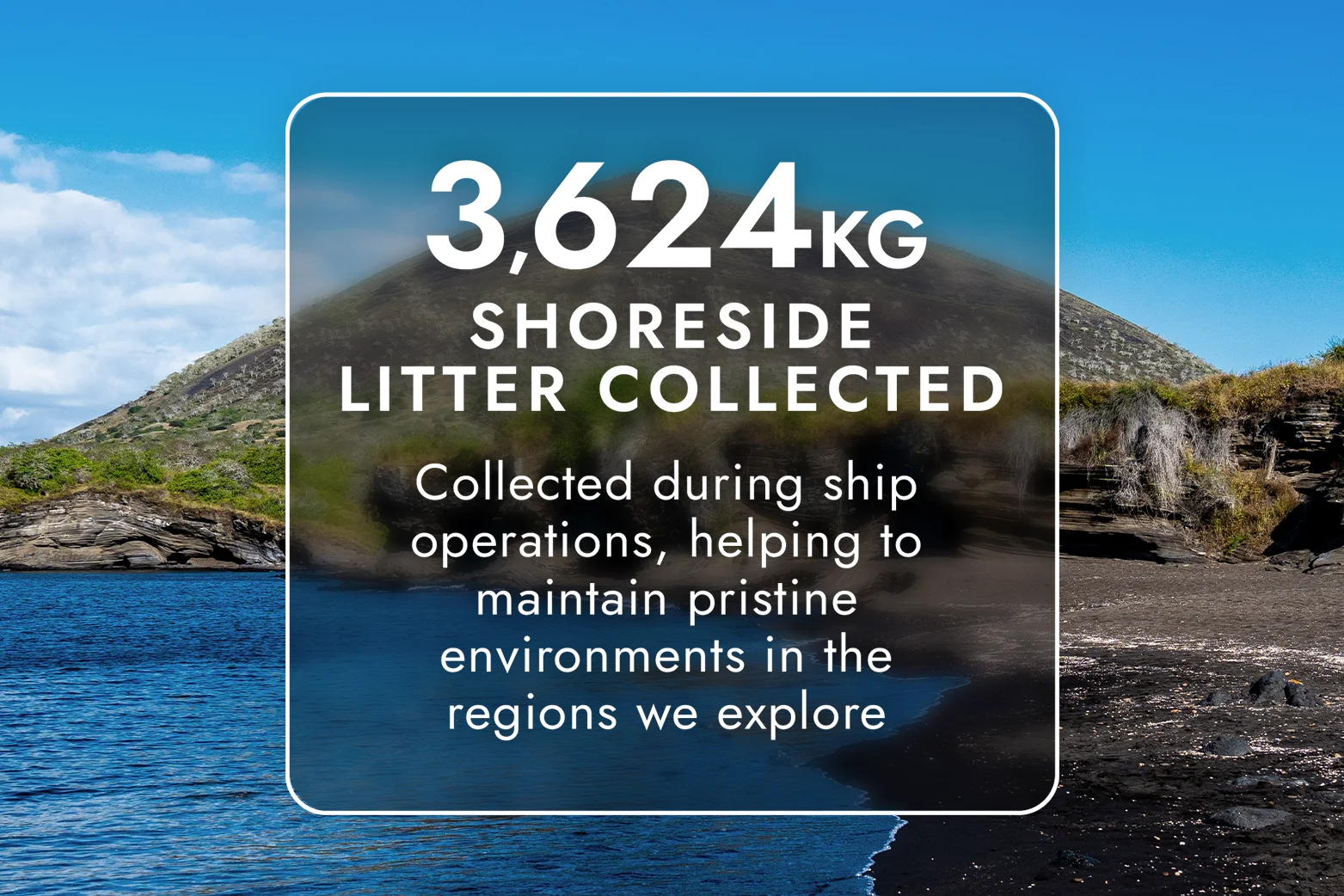 3,624 kg of litter collected shoreside during ship operations with the help of our staff and guests, helping to maintain pristine environments in the regions we explore.