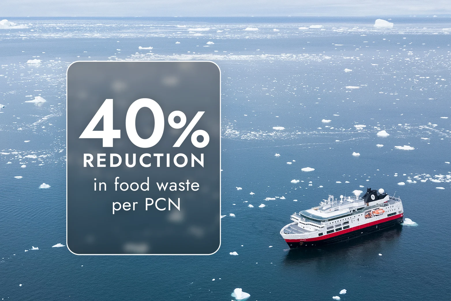 The biggest win for 2024 was a whopping 48% reduction in food waste per PCN due to an increased focus supported by the dedication of our food waste manager, Robin Thompson. Robin monitors the food waste data on a weekly basis and calls the ships if figures escalate to intervene early and put contingency measures in place. A majority of the savings have come from reducing the pre-preparation requirements for the food served in our fine-dining Lindstrom restaurant.