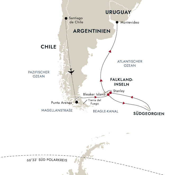 Nach Ihrem Flug von Santiago de Chile gehen Sie in Punta Arenas an Bord und nehmen mit uns Kurs auf die Antarktis. In den nächsten zehn Tagen erkunden wir diesen faszinierenden Kontinent gemeinsam im Licht des Spätsommers. Während dieser Jahreszeit färben wunderschöne Sonnenuntergänge Eis und Schnee in den schönsten Gold-, Orange- und Rosatönen. Wie immer bestimmt hier die Natur sowohl Route als auch Aktivitäten. Wir passen unsere Pläne flexibel den jeweiligen Wetterbedingungen an, um Ihnen stets die bestmöglichen Anlandestellen und Möglichkeiten für Tierbeobachtungen zu bieten.
