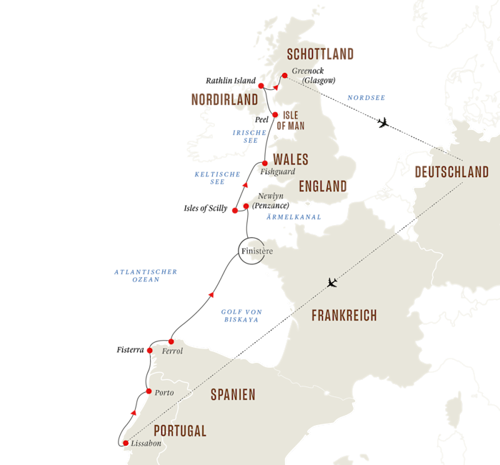 Europäische Atlantikküste und die Westküste der britischen Inseln – von Lissabon bis Glasgow (Greenock)