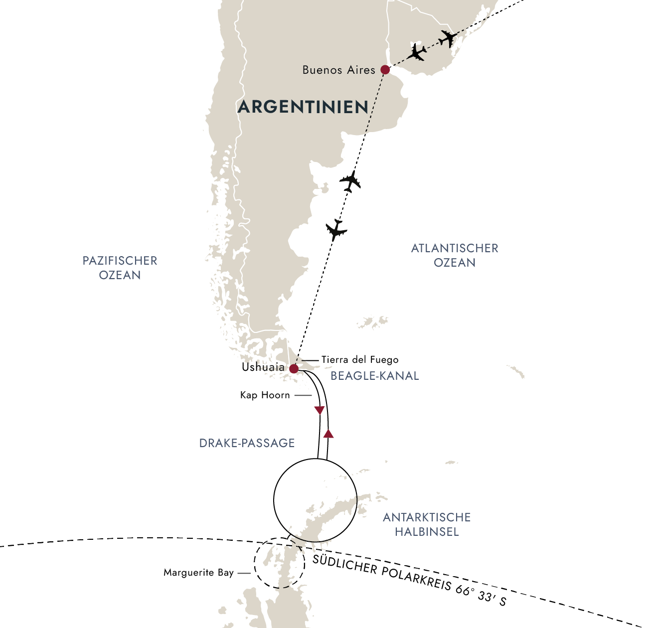 - Transfer vom Hotel in Buenos Aires zum Flughafen vor der Expeditions-Seereise