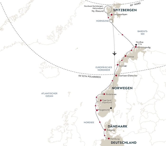 Ihr Abenteuer in Norwegen und Spitzbergen endet in Longyearbyen, von wo aus Sie Ihren Rückflug nach Deutschland antreten.