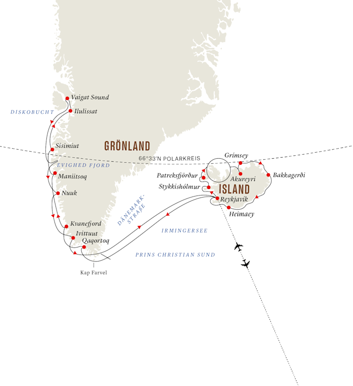 Ihre große Expeditions-Seereise nach Island und Grönland neigt sich dem Ende zu, wenn Sie am frühen Morgen wieder in Islands moderner Hauptstadt eintreffen. In Ihrer Erinnerung und auf den Speicherkarten Ihrer Kamera werden Sie eine Vielzahl an unvergesslichen Erlebnissen mit nach Hause nehmen – von spektakulären Landschaften bis hin zu unglaublichen Begegnungen.