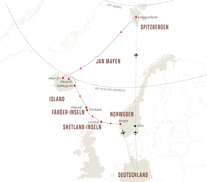 15-tägige Expeditions-Seereise nach Spitzbergen, Island, zu den Färöer-Inseln, den Shetland-Inseln und nach Norwegen