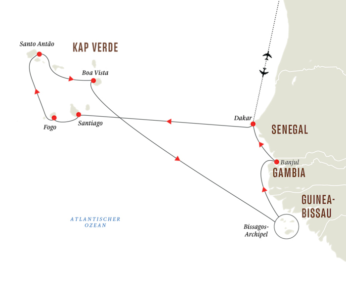 Wir verabschieden uns von den Kapverdischen Inseln und setzen unsere Expeditions-Seereise mit der Fahrt nach Guinea-Bissau fort. Ihr Expeditionsteam wird Sie während der Fahrt über all das informieren, was nun vor Ihnen liegt.