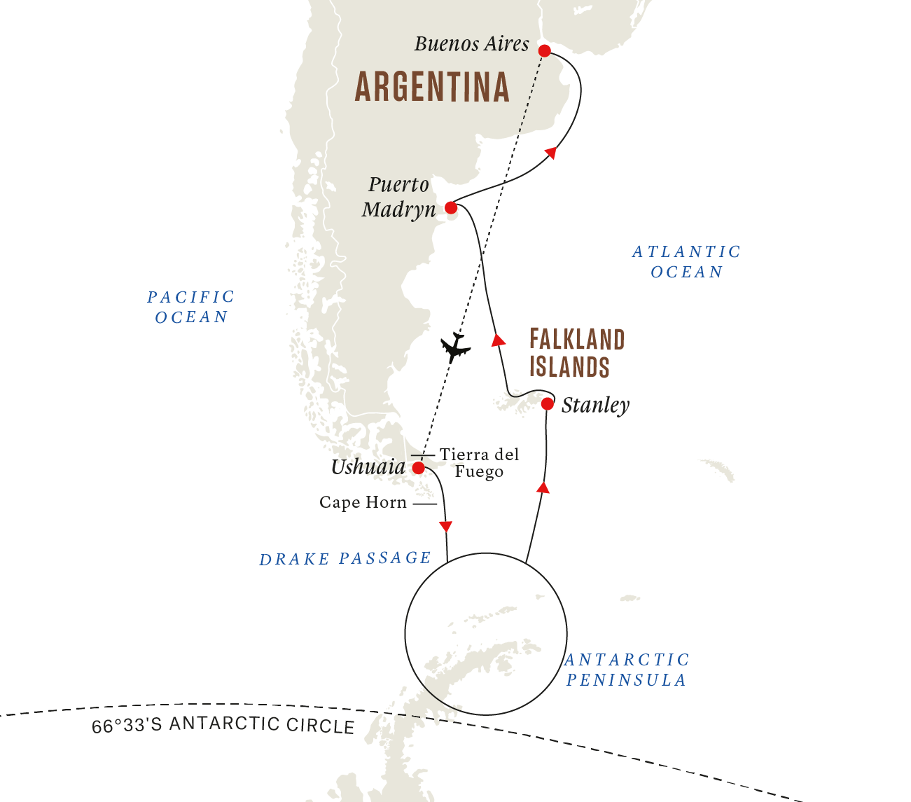 - Transfer from the hotel in Buenos Aires to Buenos Aires airport before the expedition cruise