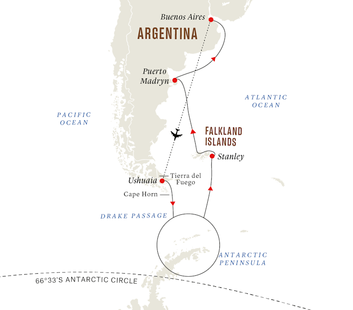 Join us on a late-summer expedition to experience unique landscapes, wildlife and amazing sunsets in the white continent, the Falkland Islands and Puerto Madryn