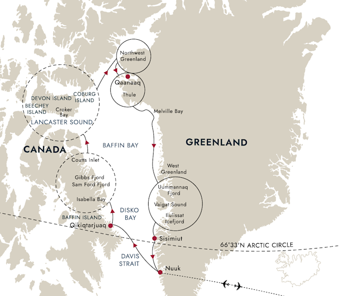 Enjoy the best of the western Arctic as you circumnavigate the icy waters of Baffin Bay, exploring Baffin Island, Devon Island, Northwest Greenland and Disko Bay.