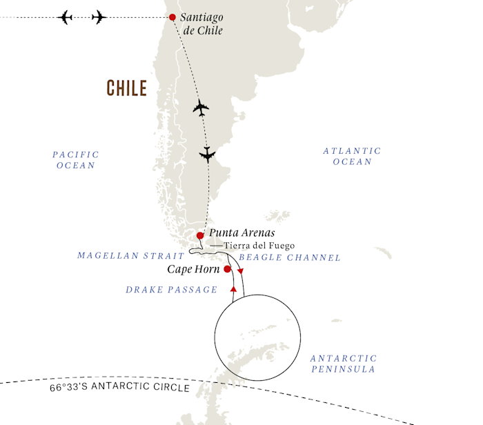- One hotel night in Santaigo de Chile, including breakfast, before the expedition cruise