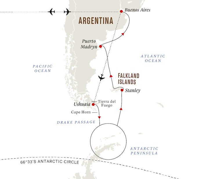 - One hotel night in Buenos Aires, including breakfast, after the expedition cruise