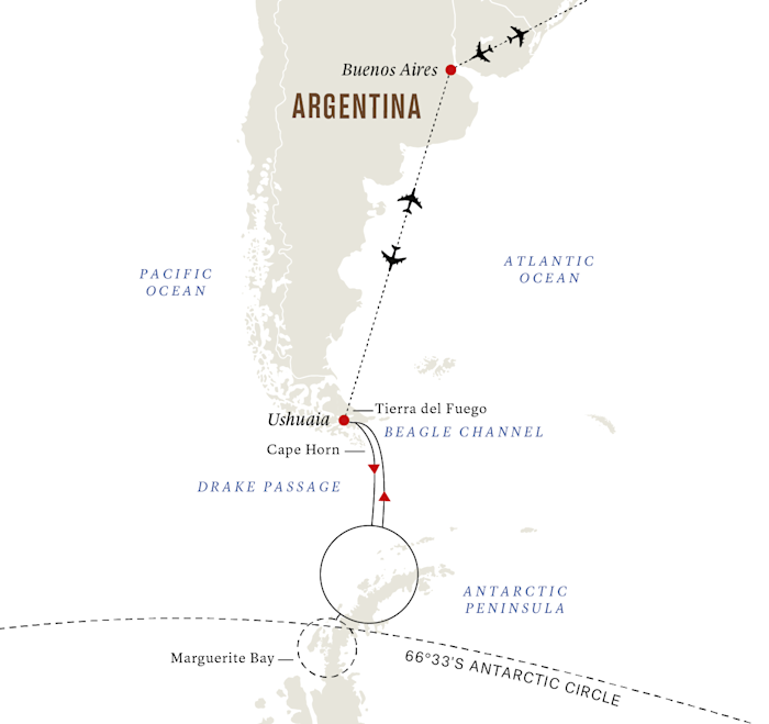 Your adventure begins with an early morning flight to Ushuaia, where we'll meet your hybrid-powered expedition ship, specially designed for exploring polar waters.