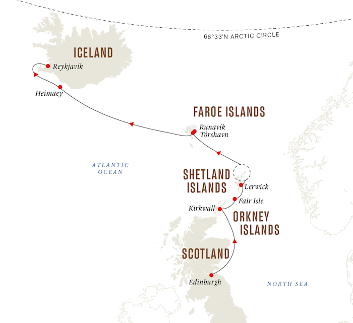 Sail from Edinburgh to the Icelandic capital via the remote and wild isles of the North Atlantic. As the gentler summer weather warms these much-storied seas, you’ll explore exciting capital cities, Neolithic sites, thriving island towns and tiny villages where the influence of the Vikings can still be felt.