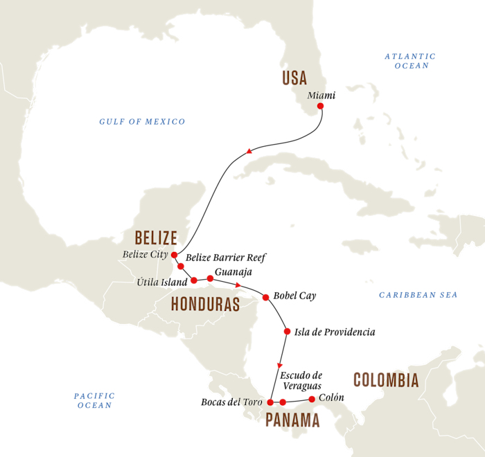 13-day Central America expedition cruise from Miami to Belize, Honduras, Colombia and Panama