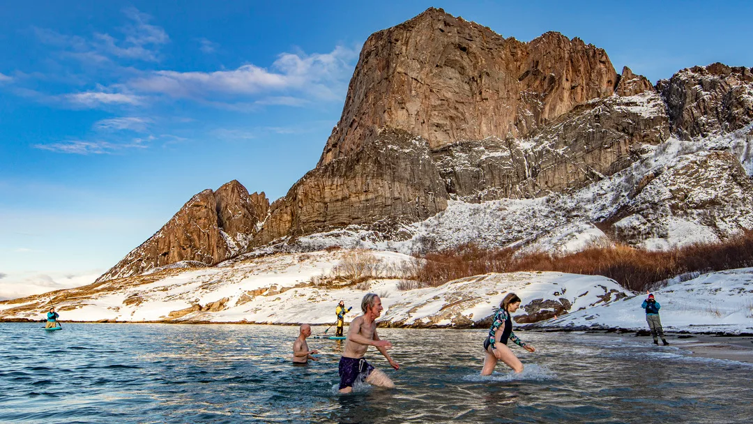 In Norway, for example, we offer the Nordic Sauna and Polar Plunge experience, a bracing, unforgettable Arctic ritual set against the backdrop of a tiny fishing village framed by peaks.
