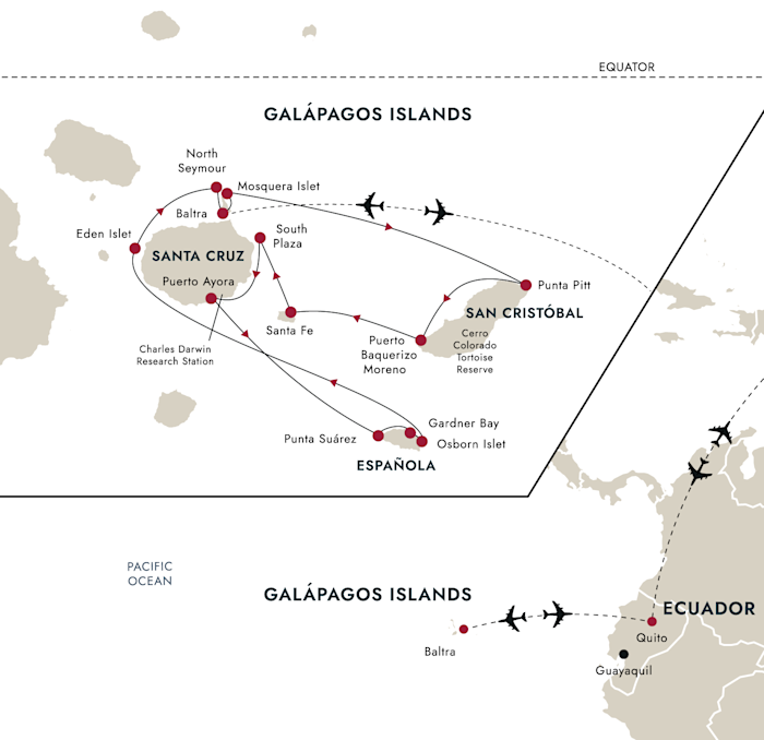 - Your flight from Baltra will be to Quito. If you wish to end your expedition in Guayaquil, please advise your booking agent