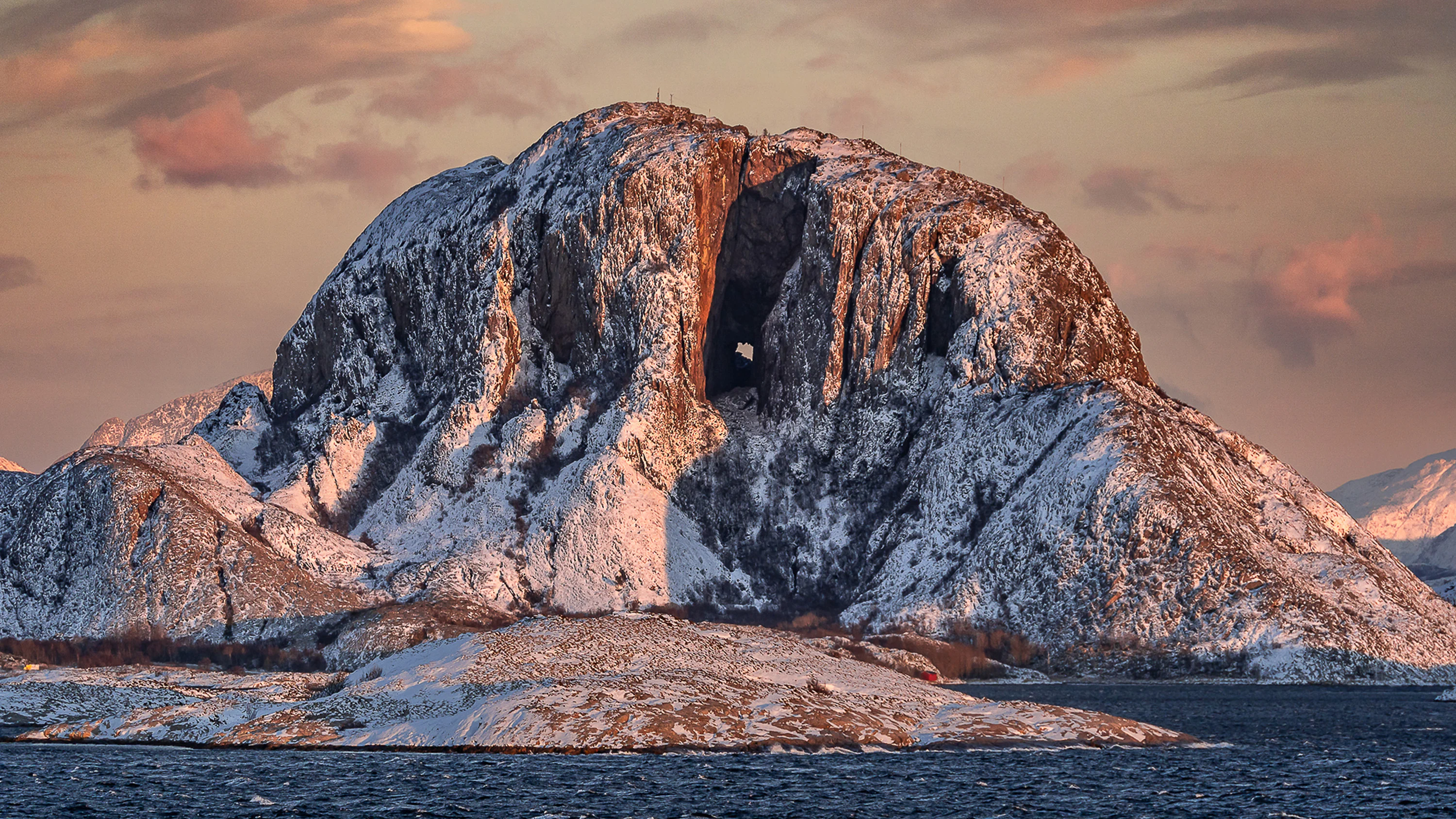 Pick out the peaks of the Seven Sisters Mountain range, thought to be the petrified bodies of seven troll sisters caught out at sunrise. And spot the Torghatten mountain with its distinct hole through the middle. Local legend states that the mountain was in fact the troll-king’s hat which turned to stone when it was pierced by an arrow.