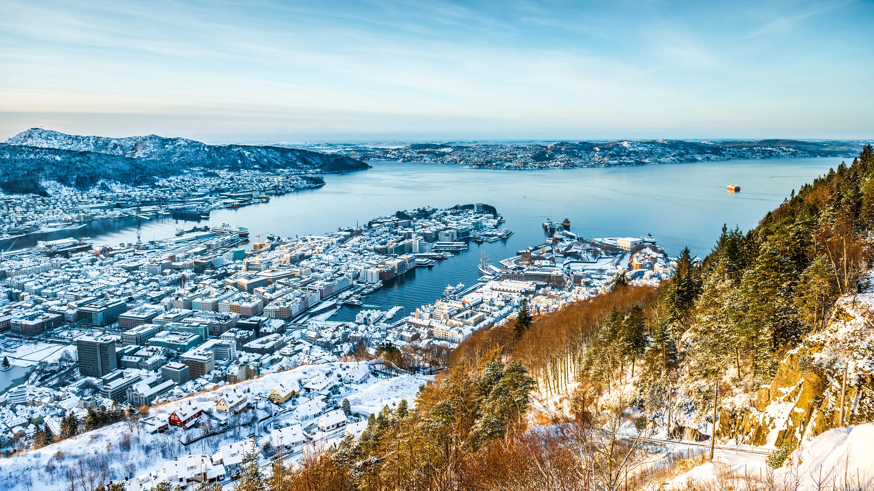 Experience stunning mountain views, and explore the charming city of Bergen