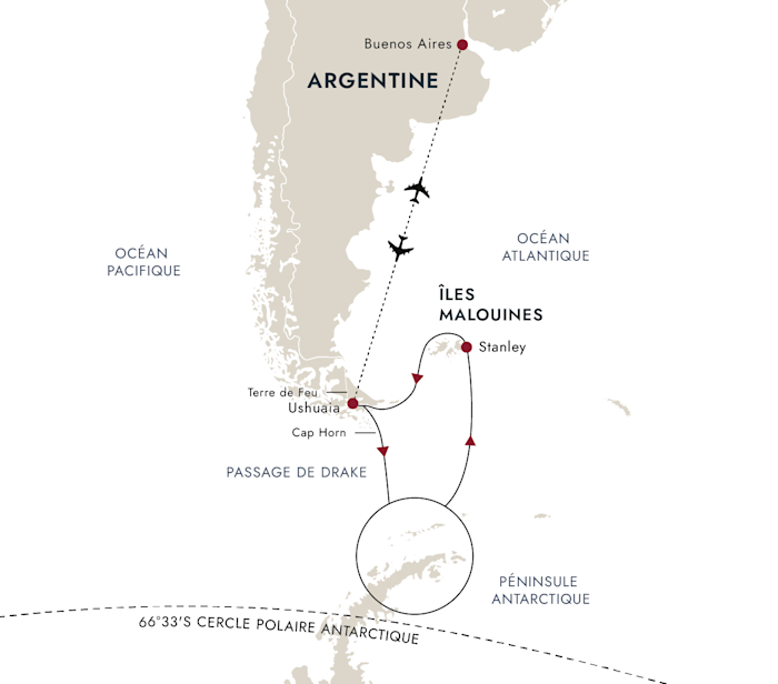 Envolez-vous plein sud pour Ushuaïa, où vous attend votre navire