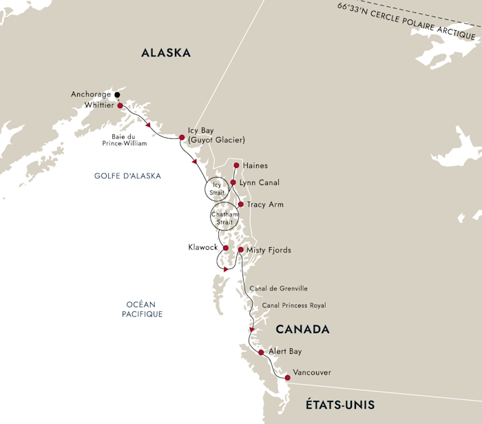 Naviguez de Whittier à Vancouver lors de cette croisière d’expédition épique à travers la région sud-est de l’Alaska. Réputé pour ses paysages incroyables, notre itinéraire nous mène dans la baie du Prince-William et Icy Bay. En chemin, des espèces animales aussi diverses que les orques, les baleines, les ours et les pygargues à tête blanche se laisseront observer. Des activités comme le kayak, la randonnée et les sorties en bateau d’expédition vous permettront de vous rapprocher au plus près de la nature.