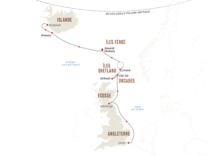 Naviguez de Douvres jusqu’à la capitale islandaise en passant par les îles sauvages et isolées de l’Atlantique Nord. Alors que la douceur de l’été réchauffe ces mers légendaires, vous explorerez des capitales passionnantes, des sites néolithiques, des villes insulaires prospères et de petits villages où l’influence des Vikings se fait encore sentir.