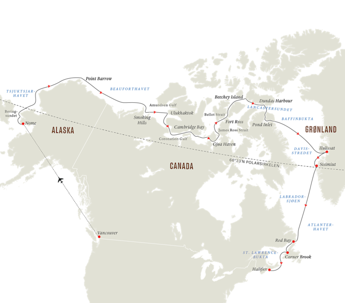 Bli med på dette ekspedisjonscruiset der vi forsøker å seile gjennom den sagnomsuste Nordvestpassasjen, hele veien fra Alaska til Grønland og Nova Scotia.