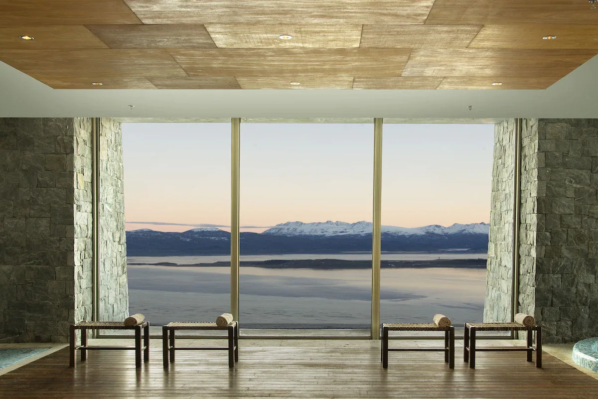 lFør vi reiser sørover til Antarktis, kan suitegjester som reiser fra Ushuaia oppleve det luksuriøse feriestedet Arakur høyt oppe i de patagonske fjellene.