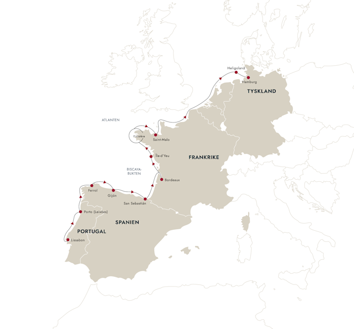 Följ med på en expeditionskryssning från Lissabon till Hamburg och upplev spektakulära landskap, Unesco-världsarv och hisnande natur längs Europas Atlantkust.