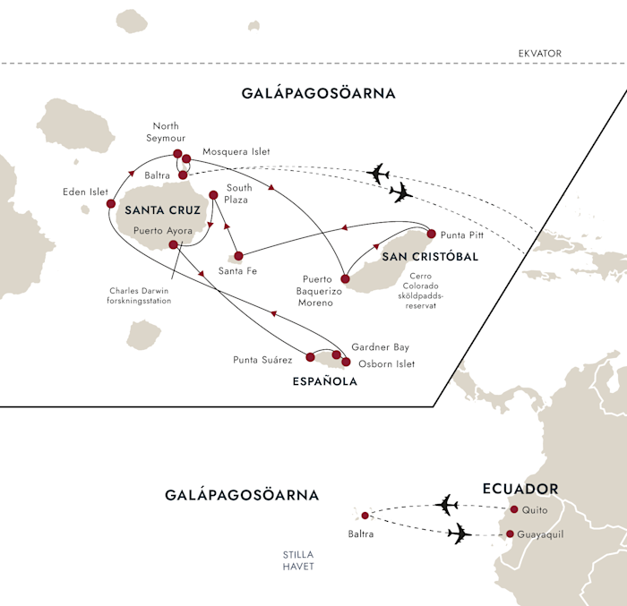 - Ditt flyg från Baltra går till Guayaquil. Om du vill avsluta din expedition i Quito, vänligen meddela din bokningsagent