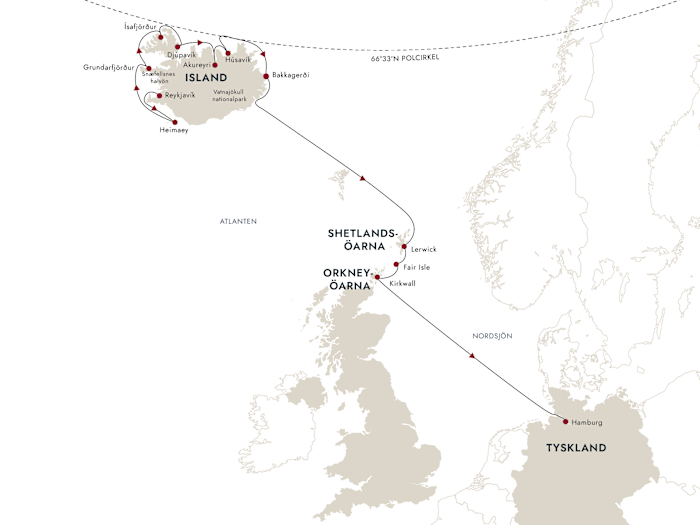 Utforska Island, Shetlandsöarna och Orkneyöarna på denna expeditionskryssning från Reykjavík till Hamburg.